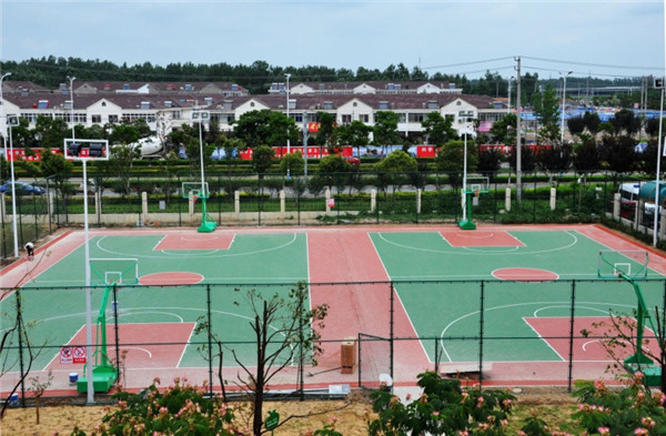此次投入使用的籃球場(chǎng)均按照國(guó)際標(biāo)準(zhǔn)尺寸建設(shè),采用硅-PU地面,具有上硬下彈、緩沖減震、防滑起動(dòng)等特點(diǎn),既可以增加運(yùn)動(dòng)緩沖,減輕腳踝、關(guān)節(jié)、韌帶的傷害,又有效解決因地面受濕而引起的打滑現(xiàn)象,保證運(yùn)動(dòng)中腳感舒適,是一種健康型專(zhuān)業(yè)彈性合成球場(chǎng)地面系統(tǒng)?;@球場(chǎng)還配置了移動(dòng)式、配有機(jī)玻璃籃板和彈性籃圈的籃球架以及8組球場(chǎng)專(zhuān)用燈光設(shè)備。