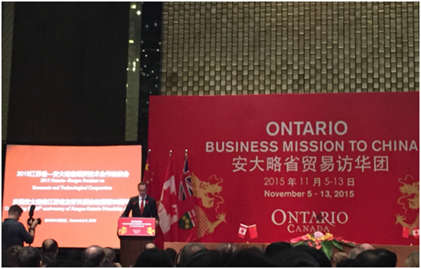 11月6日,JSSD招商團(tuán)隊(duì)代表園區(qū)應(yīng)邀赴寧參加2015江蘇省—安大略省經(jīng)濟(jì)技術(shù)合作洽談會。江蘇省和(加拿大)安大略省兩省政府代表,企業(yè)、協(xié)會、高校代表共300人參加洽談會。