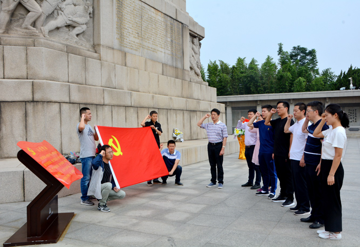 在淮海戰(zhàn)役烈士紀(jì)念塔前,大家駐足瞻仰,對(duì)烈士們肅然起敬。在公司黨支部書記劉建華的帶領(lǐng)下,全體黨員面對(duì)鮮紅的黨旗,舉起右手,重溫入黨誓詞,“我志愿加入中國(guó)共產(chǎn)黨,擁護(hù)黨的綱領(lǐng),遵守黨的章程,履行黨員義務(wù),執(zhí)行黨的決定……”,鏗鏘有力的宣誓,向?yàn)樵诨春?zhàn)役中犧牲的先烈們表示深深的敬意,表達(dá)了全體黨員愿為社會(huì)主義事業(yè)奮斗終身的堅(jiān)定信心。隨后,大家懷著崇敬的心情瞻仰了在戰(zhàn)役中英勇?tīng)奚牧沂坑⒚?。在紀(jì)念館展廳,大家都認(rèn)真參觀,仔細(xì)聆聽(tīng)講解員對(duì)歷史的講解,每到一個(gè)展柜都會(huì)駐足觀看圖片資料,了解淮海戰(zhàn)役的整個(gè)過(guò)程,深深感受到了革命先烈們的非凡膽識(shí)和英勇壯舉,并對(duì)人民群眾踴躍支持前線行為表示由衷贊嘆。