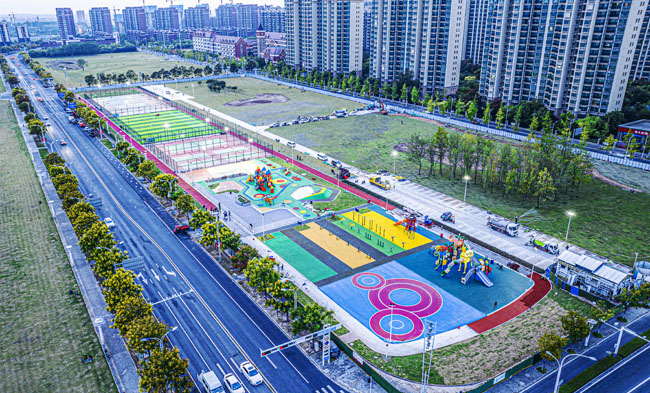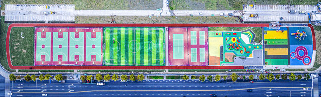該項目所處位置原為一處待開發(fā)地塊,園區(qū)根據(jù)居民需求規(guī)劃建設(shè)健身跑道、全齡段健身區(qū)、綜合兒童活動區(qū)、平地輪滑場、廣場舞片區(qū)和各類球場(其中羽毛球四組、網(wǎng)球場一組,7人制籠式足球場一組、籠式籃球場四組),同步建設(shè)公廁、停車場等配套設(shè)施。