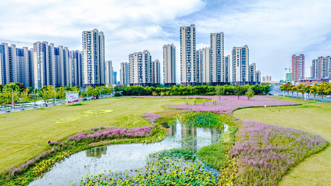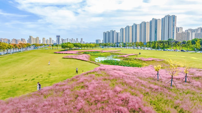 2023年10月1日,蘇宿工業(yè)園區(qū)蘇州公園北側(cè)綠地的粉黛亂子草盛開了,一片片粉色花海如夢(mèng)似幻,吸引游人前來(lái)觀賞,樂(lè)享國(guó)慶假期。
