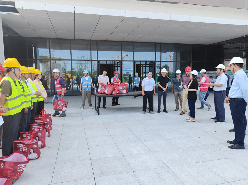 在青年公寓慰問現(xiàn)場,李蘭霞詳細(xì)了解項(xiàng)目進(jìn)展情況、高溫作息時間和生活情況,貼心地為他們送上防暑降溫用品,向他們不畏高溫,冒著酷暑堅守崗位表示慰問和感謝,并反復(fù)叮囑各項(xiàng)目部要嚴(yán)格落實(shí)好防暑降溫工作,確保安全度夏。