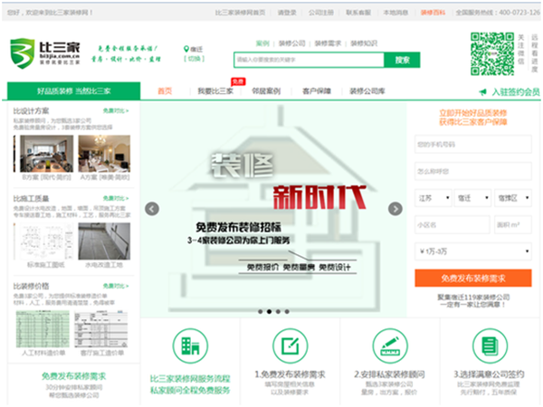 比三家裝修網(wǎng)于2015年10月份落戶蘇宿電子商務產(chǎn)業(yè)園,該裝修網(wǎng)定位于“互聯(lián)網(wǎng)+”大眾創(chuàng)業(yè)平臺,是一家扎根于三線城市,以“中介生意”模式幫助傳統(tǒng)的裝修行業(yè)的公司利用互聯(lián)網(wǎng)接到更多的訂單,幫助用戶找到合適的裝修公司。網(wǎng)站通過好品質(zhì)裝修,比設(shè)計方案、比施工質(zhì)量、比裝修價格,為用戶提供符合比三家裝修網(wǎng)標準的服務。