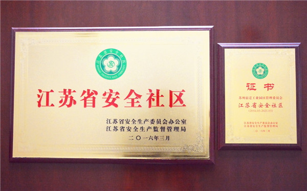 園區(qū)被命名為“江蘇省安全社區(qū)”